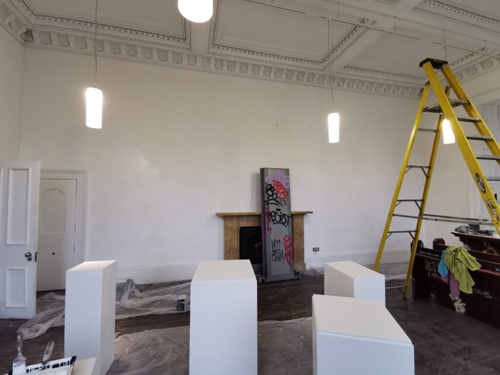On Sunday it was a team effort of painting over the graffiti, starting the process of returning the gallery rooms to their original state. By the time it was all finished, the venue was back to neutral, as if nothing had happened – though those of us who built it knew LOGOS still lingered somewhere in the walls.