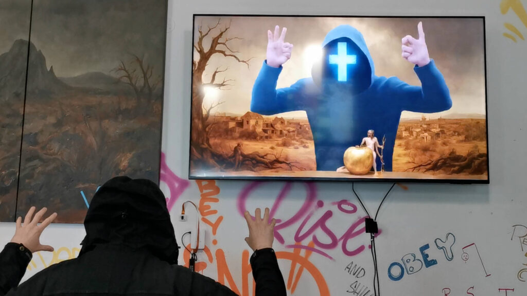 Trevor will rely on that footage as he develops the next phase of EXPOS3D – a larger-scale venue where more of the original ideas can surface: distinct themed rooms connected through LOGOS, exploring the overlapping subjects of faith, surveillance, and rebellion. With this first iteration being self-funded, that documentation is key to securing future support.